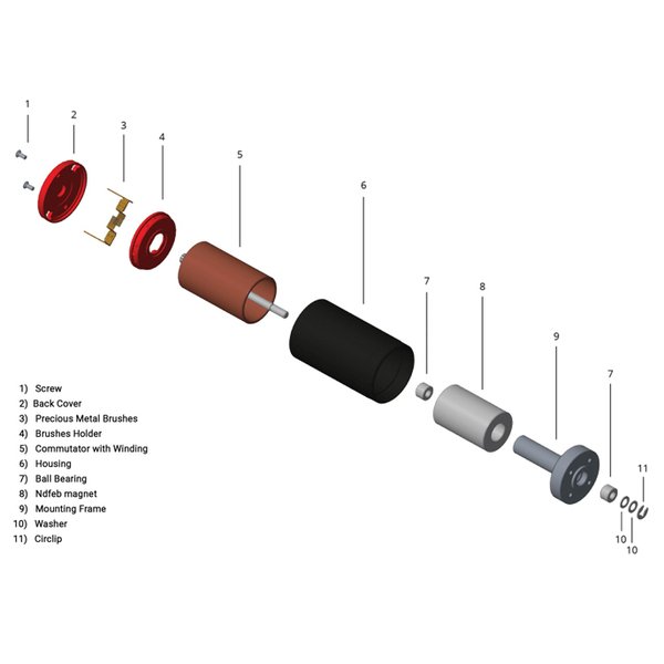 Famiglia di Micro Motori Coreless DC con flangia tonda 16mm e spazzole in metallo prezioso.